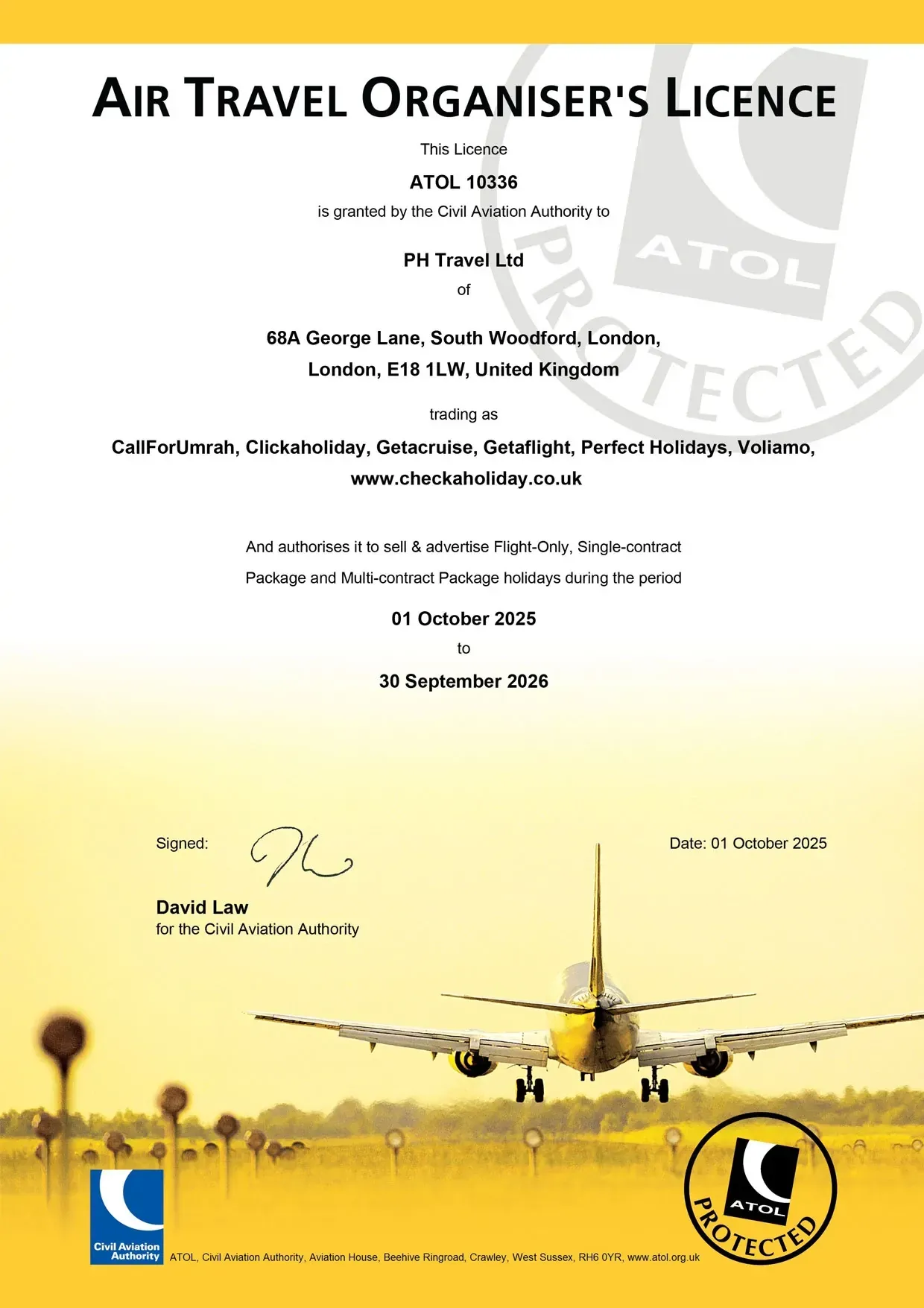 ATOL CERTIFICATE